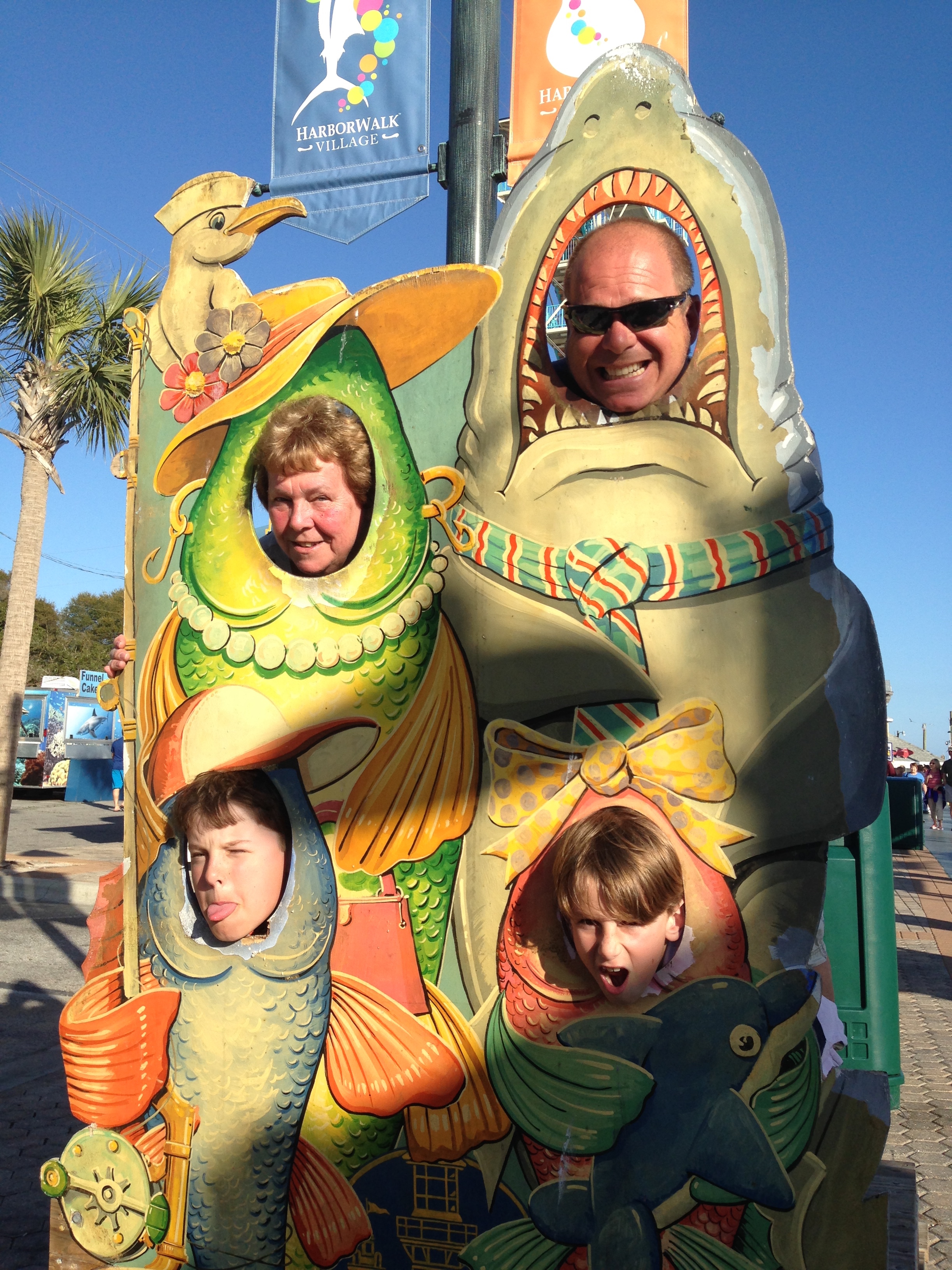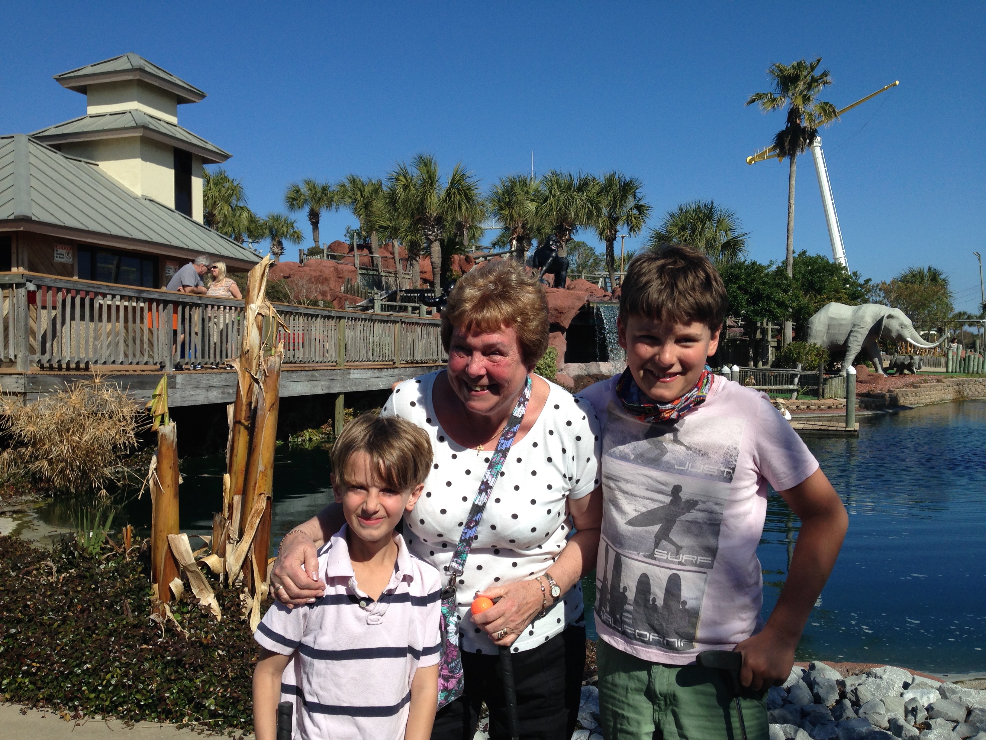 Did proper holiday activities like Crazy Golf (which it turns out Doreen is actually a bit brilliant at!!) and the arcades. We spent a couple of nice afternoons at Destin Harbour Village (one of the locations used for the film Jaws 2), which is full of shops and restaurants. Got our first real glimpse at the Florida Snow Birds, who appear to enjoy the sunshine with a glass of something in their hand at all times – great retirement living!! On Monday we did a Harbour Sunset Cruise to see the dolphins. Lovely to be out on the water with pelicans flying around us and dolphins swimming alongside the boat. The highlight of the afternoon though was watching the pelicans and herons on the boardwalk. The fishermen were there gutting their catch with an audience of 20 odd pelicans who stood begging and squabbling amongst themselves. Then an audience of 20 odd people watching the pelicans!!