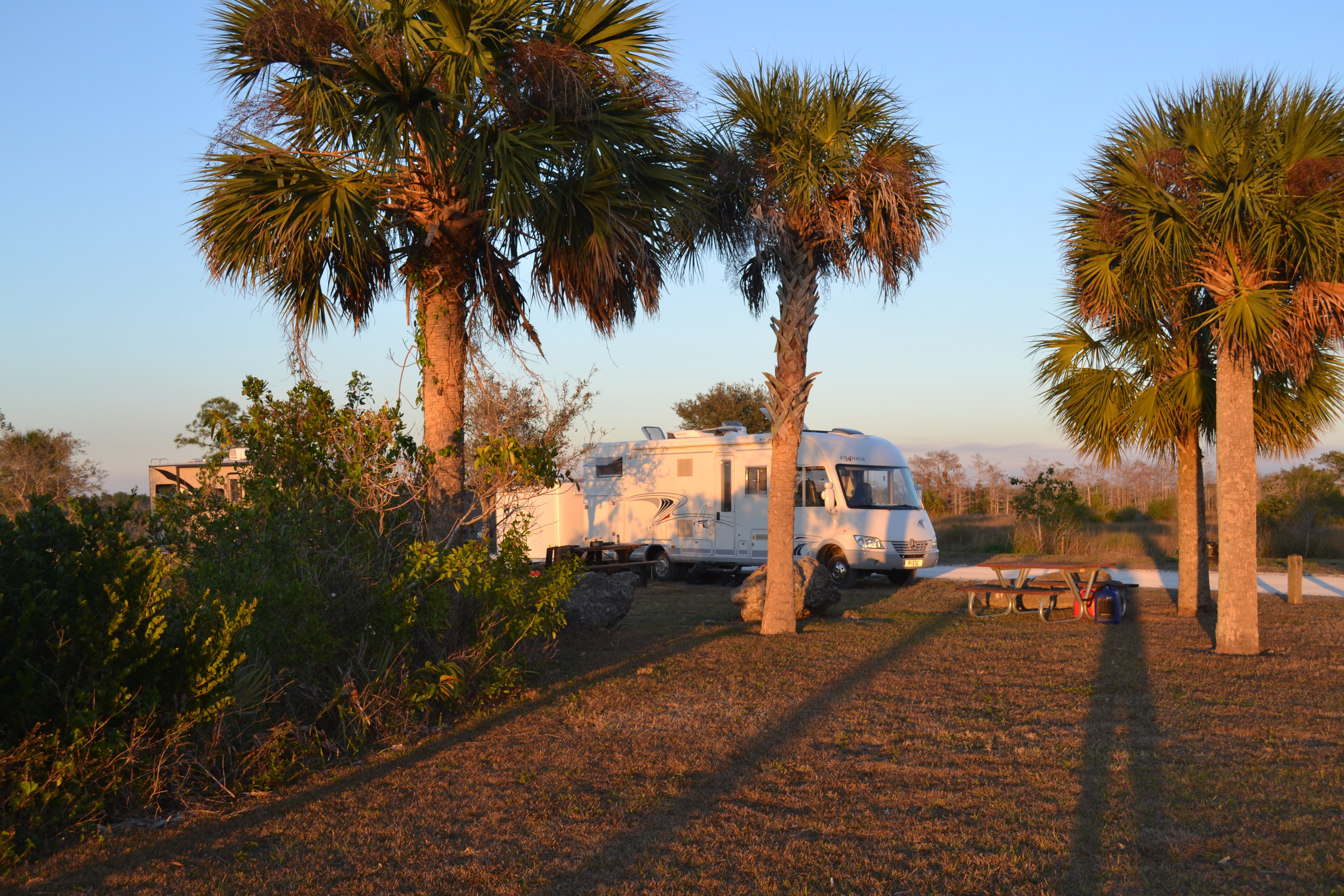 That night however we were booked into one of the National Park campgrounds within Big Cypress. Now this is the kind of campsite we like. 40 pitches all dotted around the lake. So each spot was proper ‘lakeside’ – not 2 rows back from the lake which can only be seen though the awnings, cars and general paraphernalia of other campers sites!! The campground hosts told us there were alligators in the lake and not to fish too near to them – good tip. Very small and very laid back there had been a family visiting for the day who had been using the bench and fire pit at our site before we arrived, which the hosts hoped we didn’t mind. Not at all because when we arrived they were cooking the most amazing smelling chorizo, which they very sweetly shared with us!!
