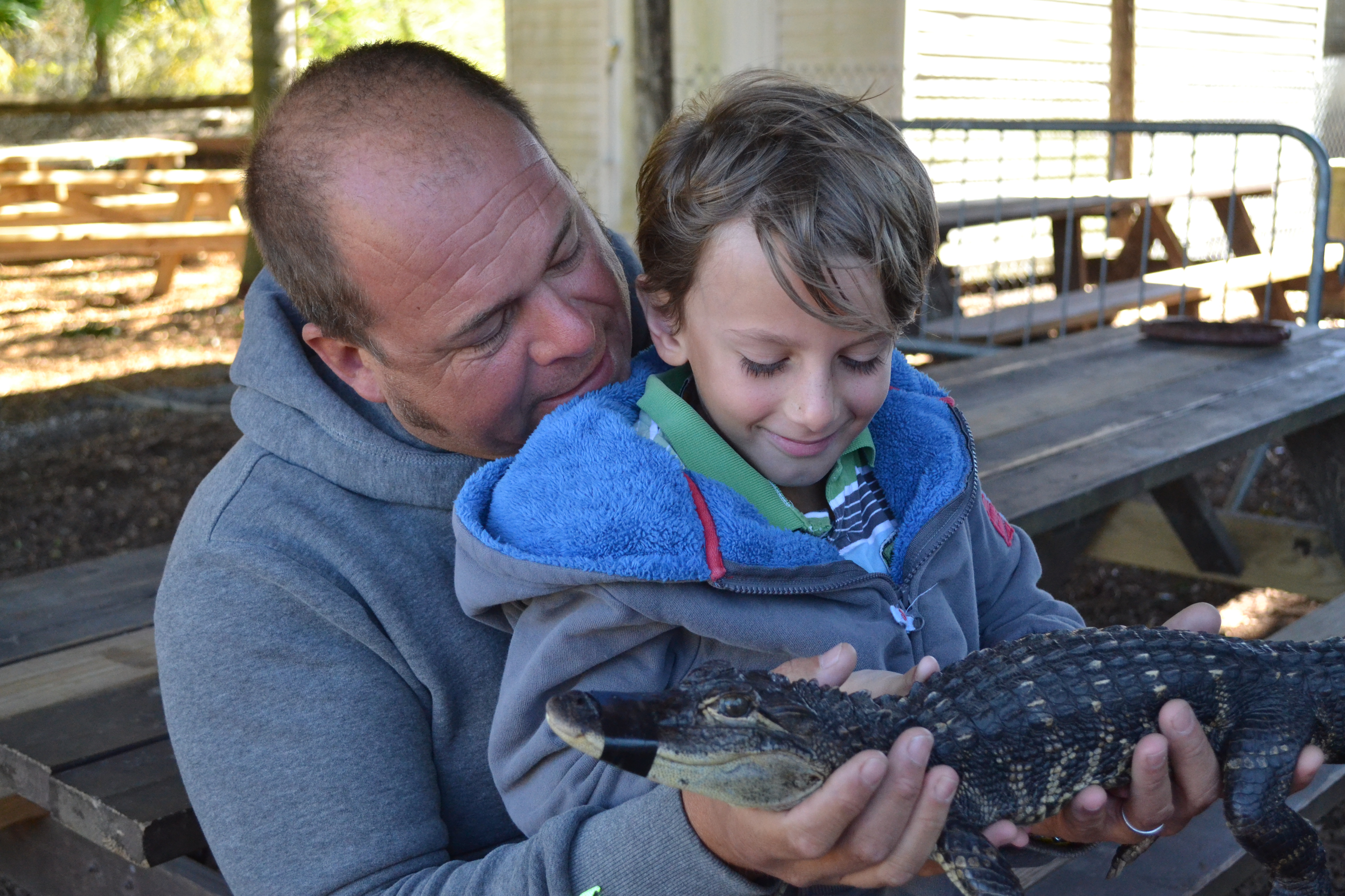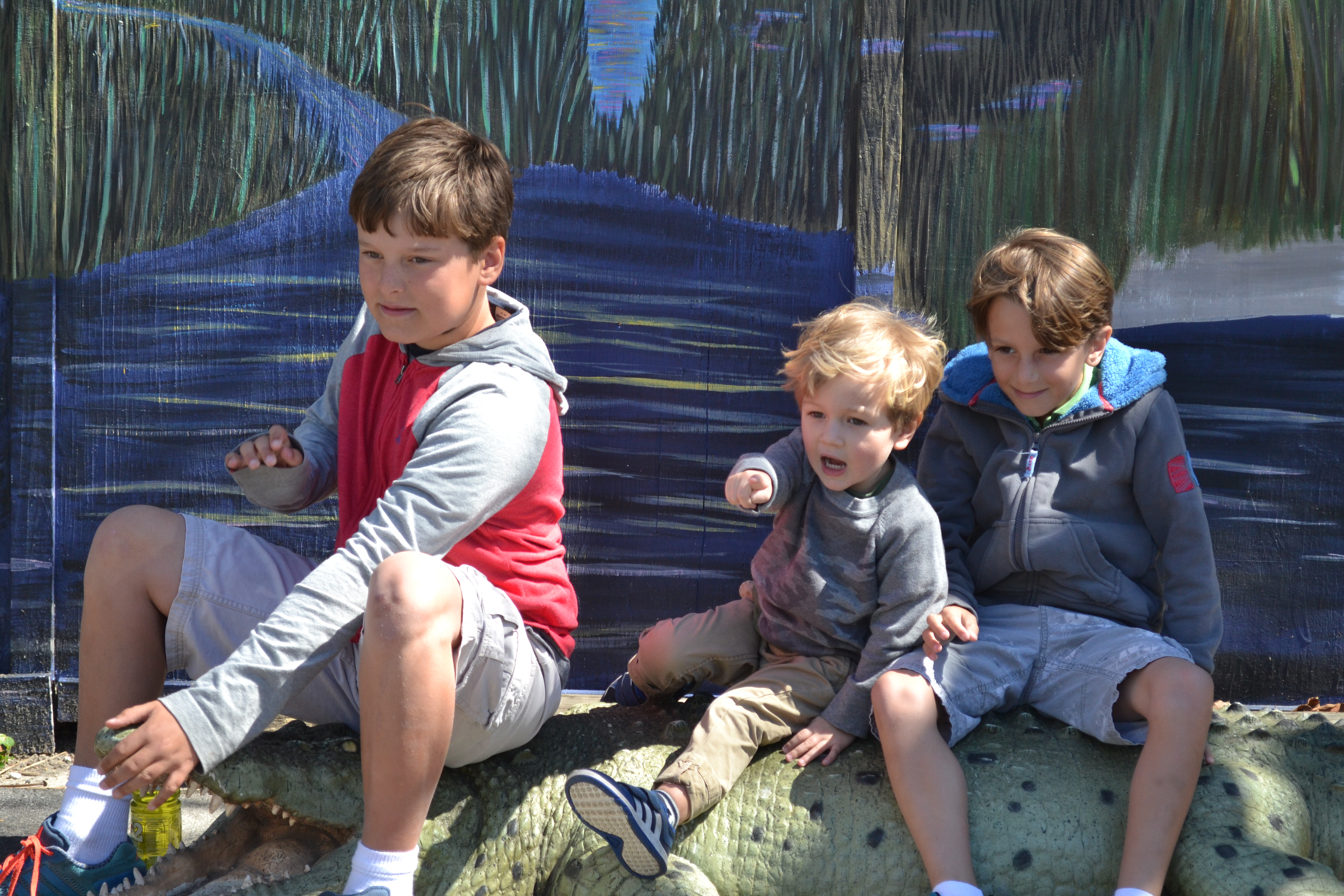Turns out one of us HAD turned it off so Frankie was safe. However, by the time we returned the car park had filled up so we had to quickly reverse out before we got completely wedged in, which meant the kids missed the chance to hold a baby alligator!! Well William managed to push himself to the front of the line to have a go, but without us there Charlie was hesitant and came away kicking himself. We told him we were sure we would see another one at some stage – oh if only we had known then just how many more we would encounter!!