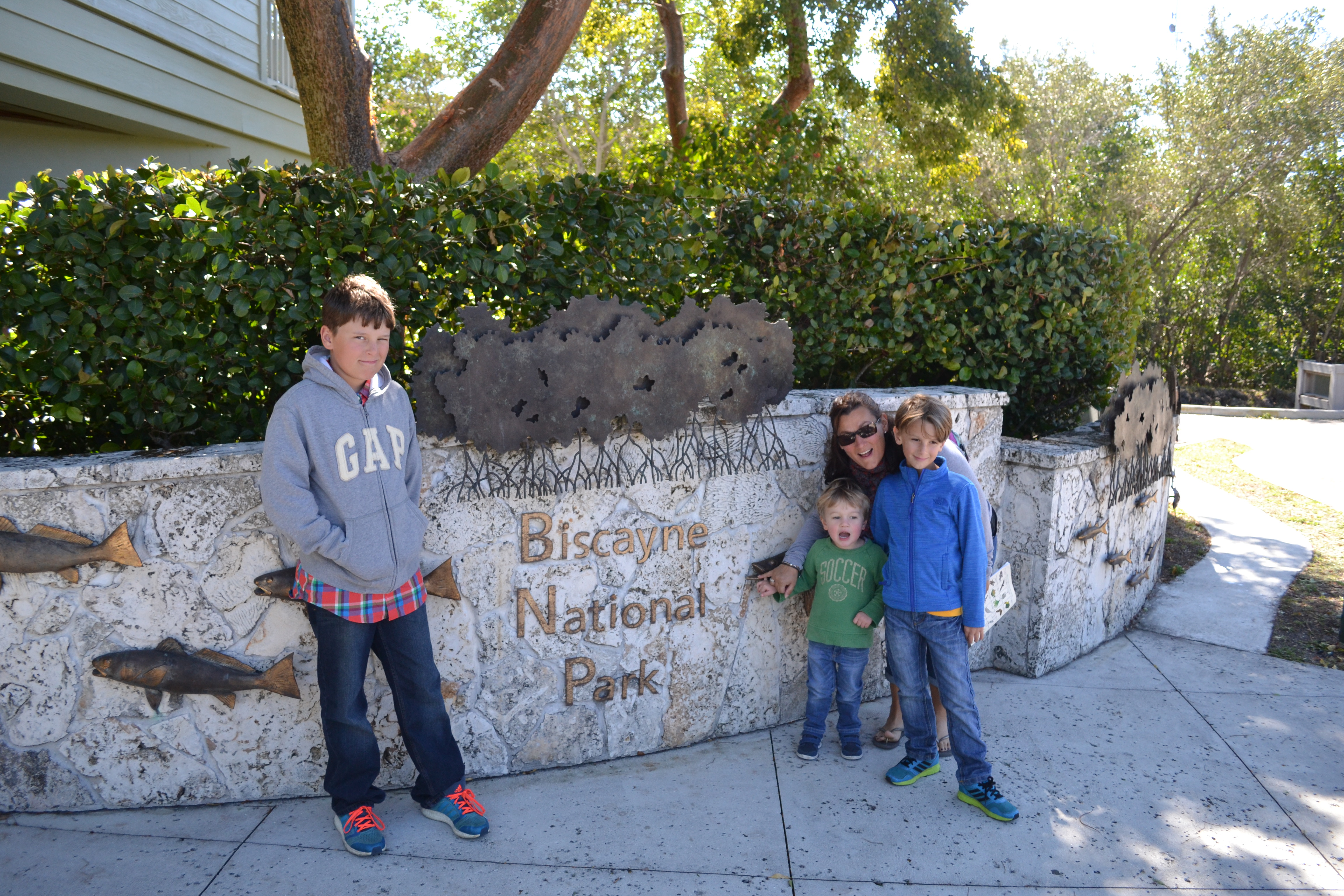 Friday was our last day with them. Jon was really poorly so he stayed in bed and the rest of us headed to Biscayne National Park. I’d been really excited about this park as it looked stunning and was totally different to any of the other National Parks we’d seen so far. Unlike most of the National Parks are experienced in a car or on foot, the only real way to explore Biscayne is by boat. This is because it preserves Biscayne Bay and it’s off shore barrier reefs and 95% of its 172,000 acres are covered by water. Sadly the NPS’s boat operator had gone out of business and so unless you have your own boat (no we don’t have one of those tucked in Frankie’s trailer) you’re pretty scuppered!! So we walked the boardwalk and watched Parks film. The kids tried on turtle shells and got another Ranger badge – Jacob’s doing pretty well so far!