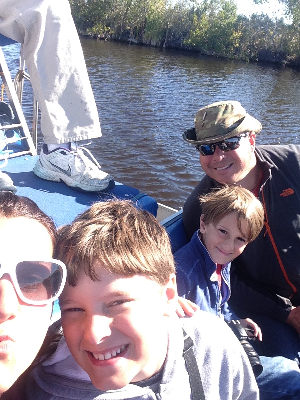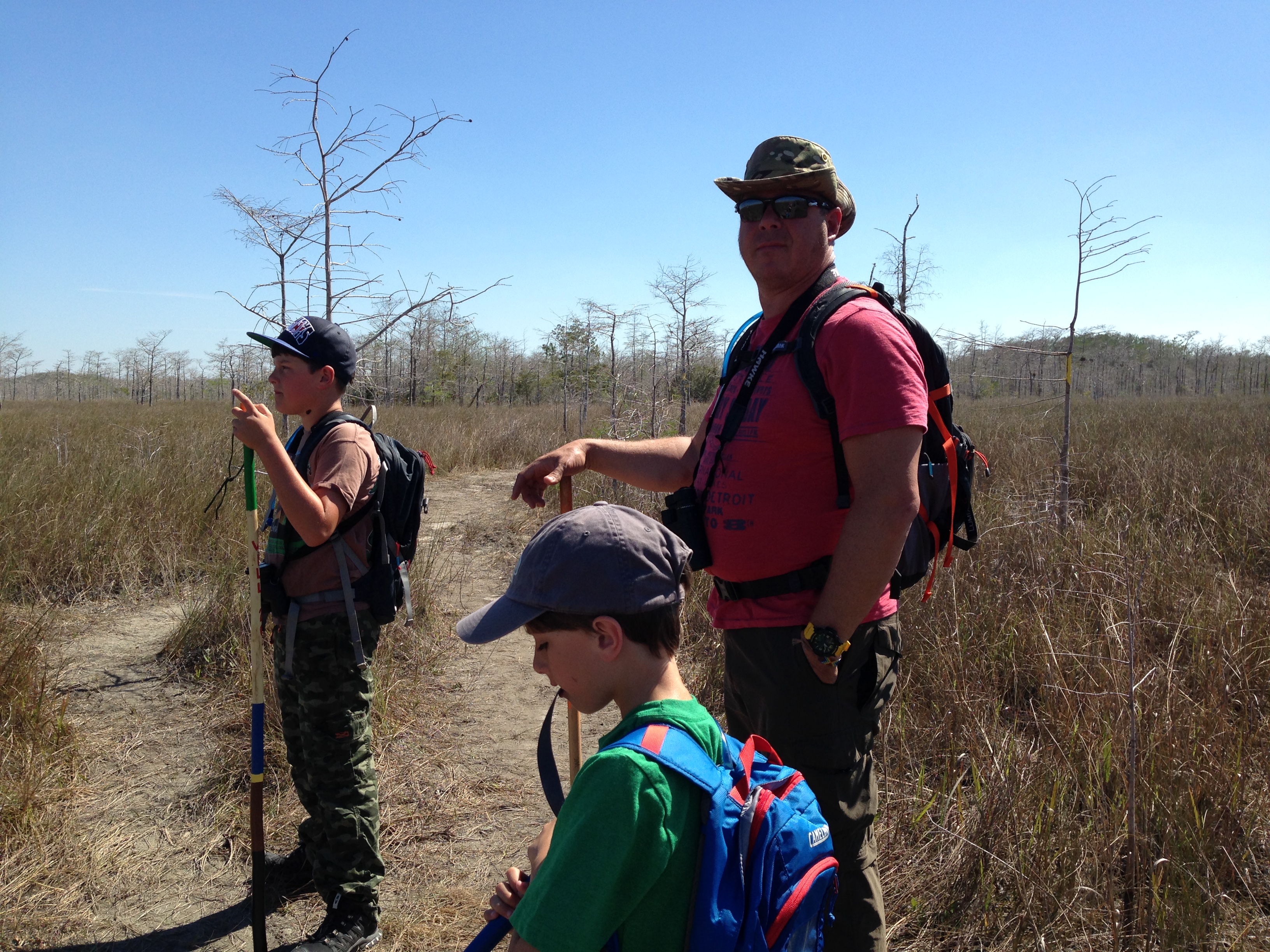 However, we weren’t here for the lovely campsites we were here to spend time with the family. Tuesday morning I have never known our kids up and dressed and ready for the day so quickly. We drove in convoy to Everglades National Park west visitor centre, hoping to find an alligator or two for Jacob to see. We promised them we didn’t need to go to Gatorland, as there would be plenty in the park. First exciting spot was a snake on path in front of us, which freaked most of us out. John came over all Steve Irwin and seemed to want to goad it into attacking someone. Luckily it obviously decided we weren’t worth it and slithered off – much to Jacob’s delight.
