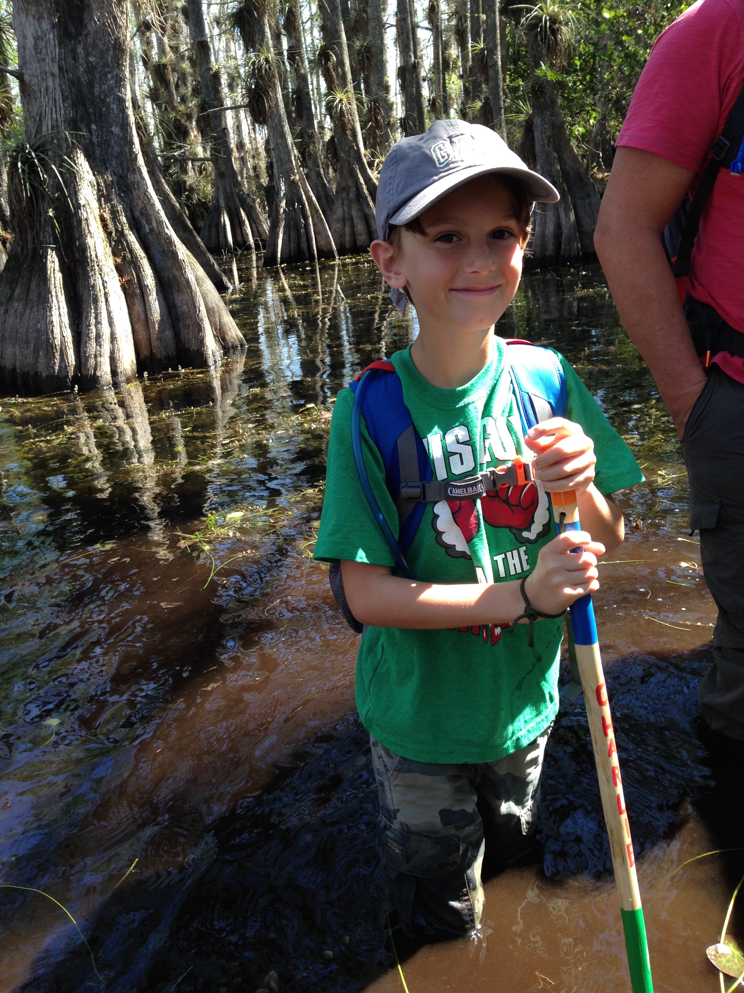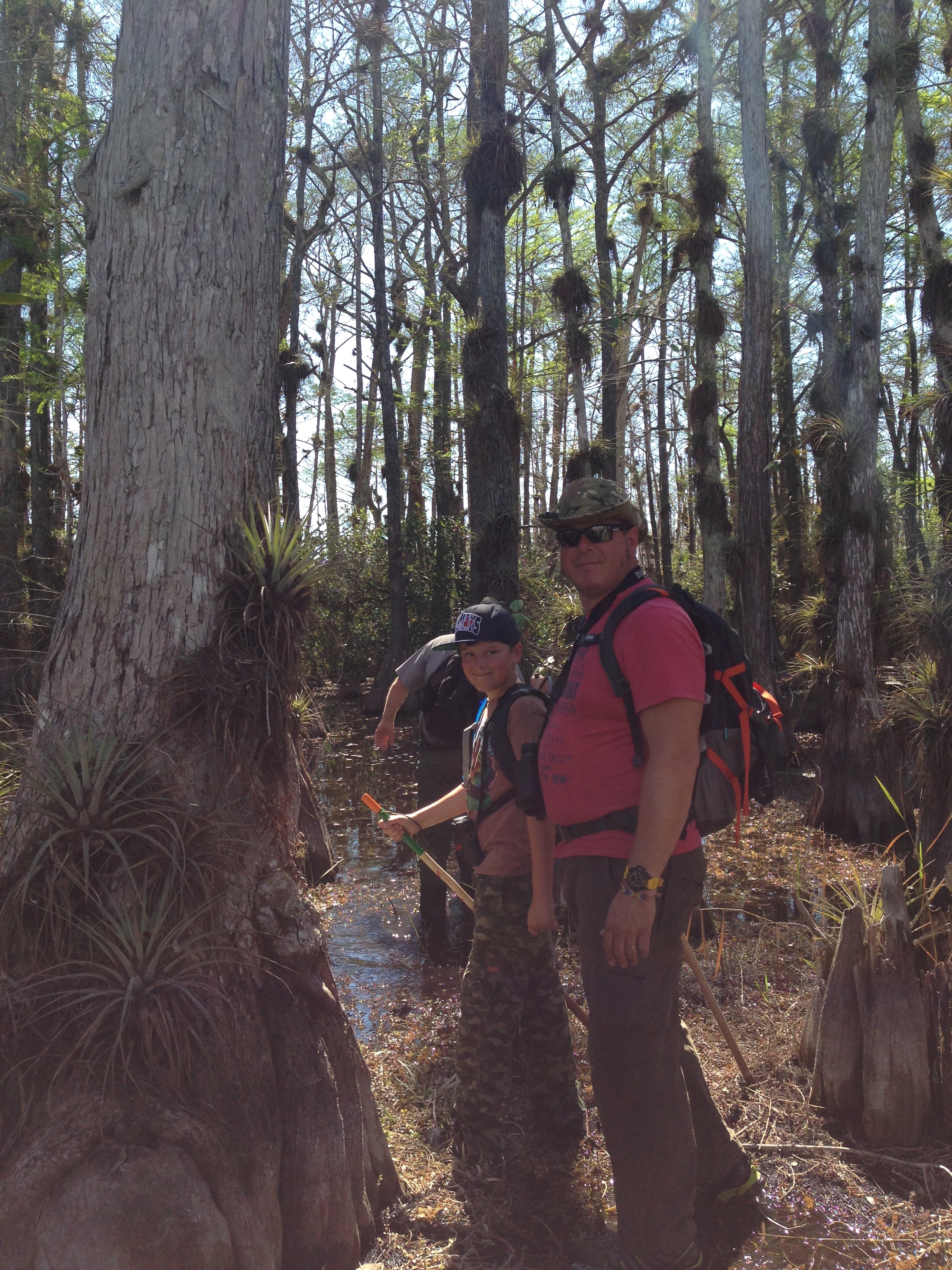All credit to him he didn’t let it put him off wading into a pool and standing there for ½ hour while we got a lesson in cypress trees, the different eco systems in the swamp and looked into a gator hole!! It was only after we had waded back out again onto dry land that the ranger said he had seen an alligator in the water behind us who had just swam quietly by and ignored us. Arghhhhh.