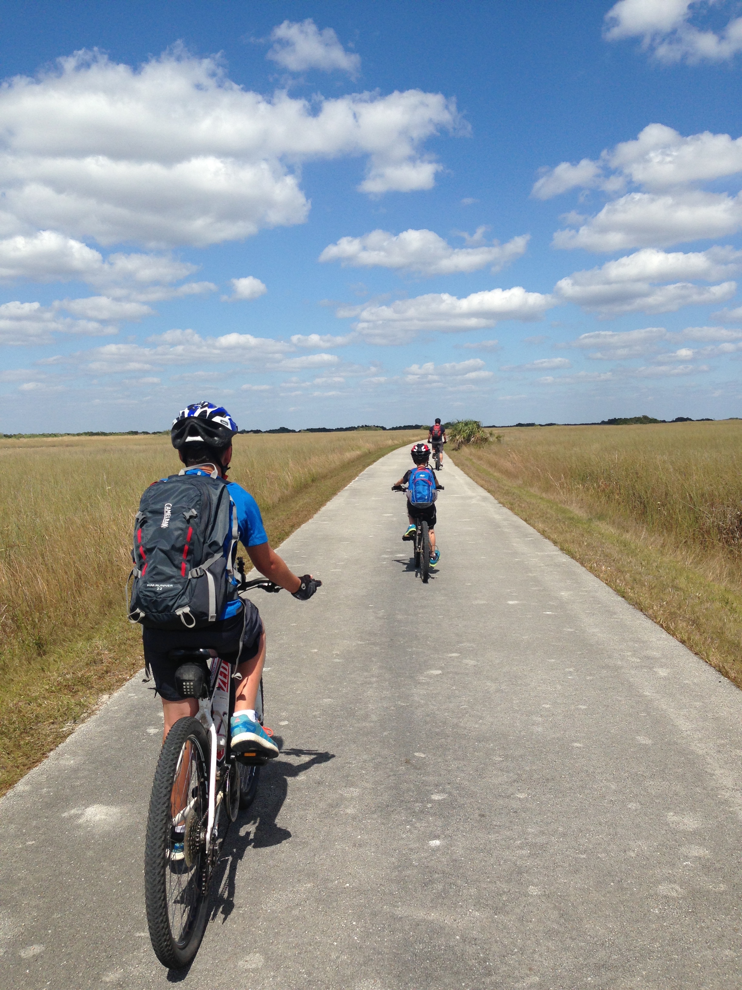 The next morning (Monday 16th February) we were up bright and early. We had a lot to do before we got to Homestead for the surprise reunion. Kids managed to squeeze an hours fishing in before breakfast – yes the little alligator was still sat there…. We drove to another visitor centre still within Big Cypress Park and parked up next to the waterway and had our breakfast watching alligators having theirs. Kids handed in their Junior Ranger program books and collected their badges. Then we drove out of Big Cypress and into Everglades National Park. We got to Shark Valley visitor centre all set to cycle the 15 mile trail, only to be told they had no parking for RV’s. This was by 10am – very frustrating, mainly because they had put cars in the RV parking spots! This is a particular annoyance to us anywhere we go – we are 38’ long. If people park their cars in parking spots designed for long vehicles then we can’t park there and unfortunately we can’t get into regular car park spots UNLIKE REGULAR CARS!!!