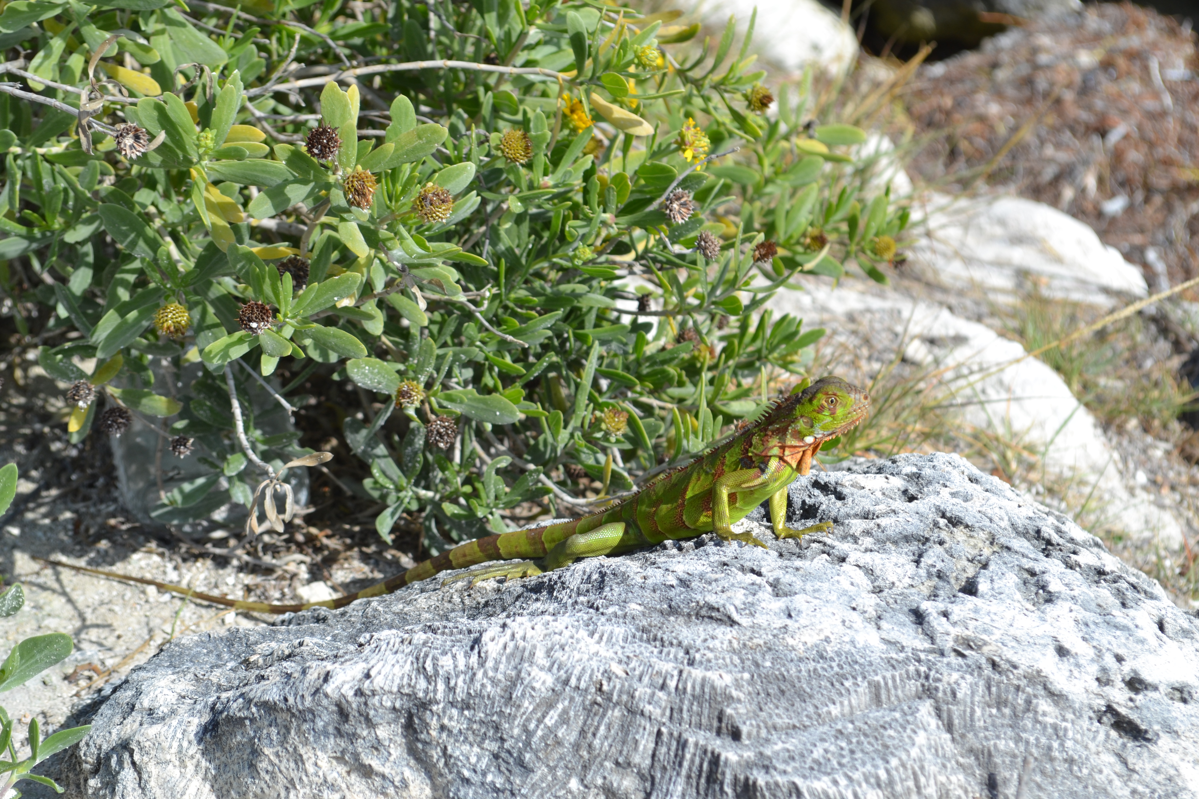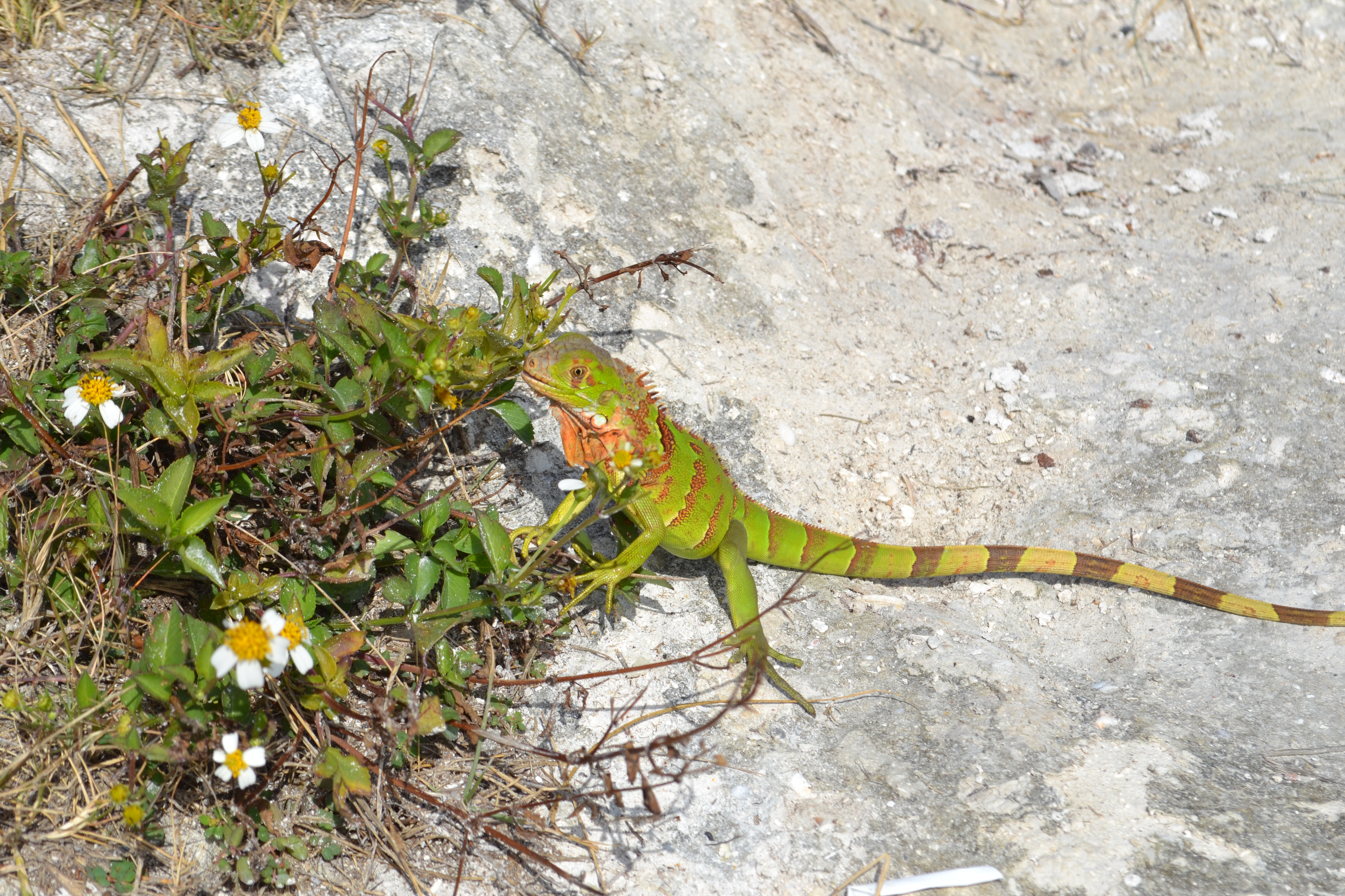 We stopped at Tom’s Harbour Channel Bridge which we were reliably informed was a good spot!! The turquoise sea made it an acceptable place to spend the afternoon so we sat back and enjoyed the view while the boys fished. Got our first experience of some pretty big lizards. One huge one nearly tripped me up then 4 green ones kept us entertained munching on our mango peel.