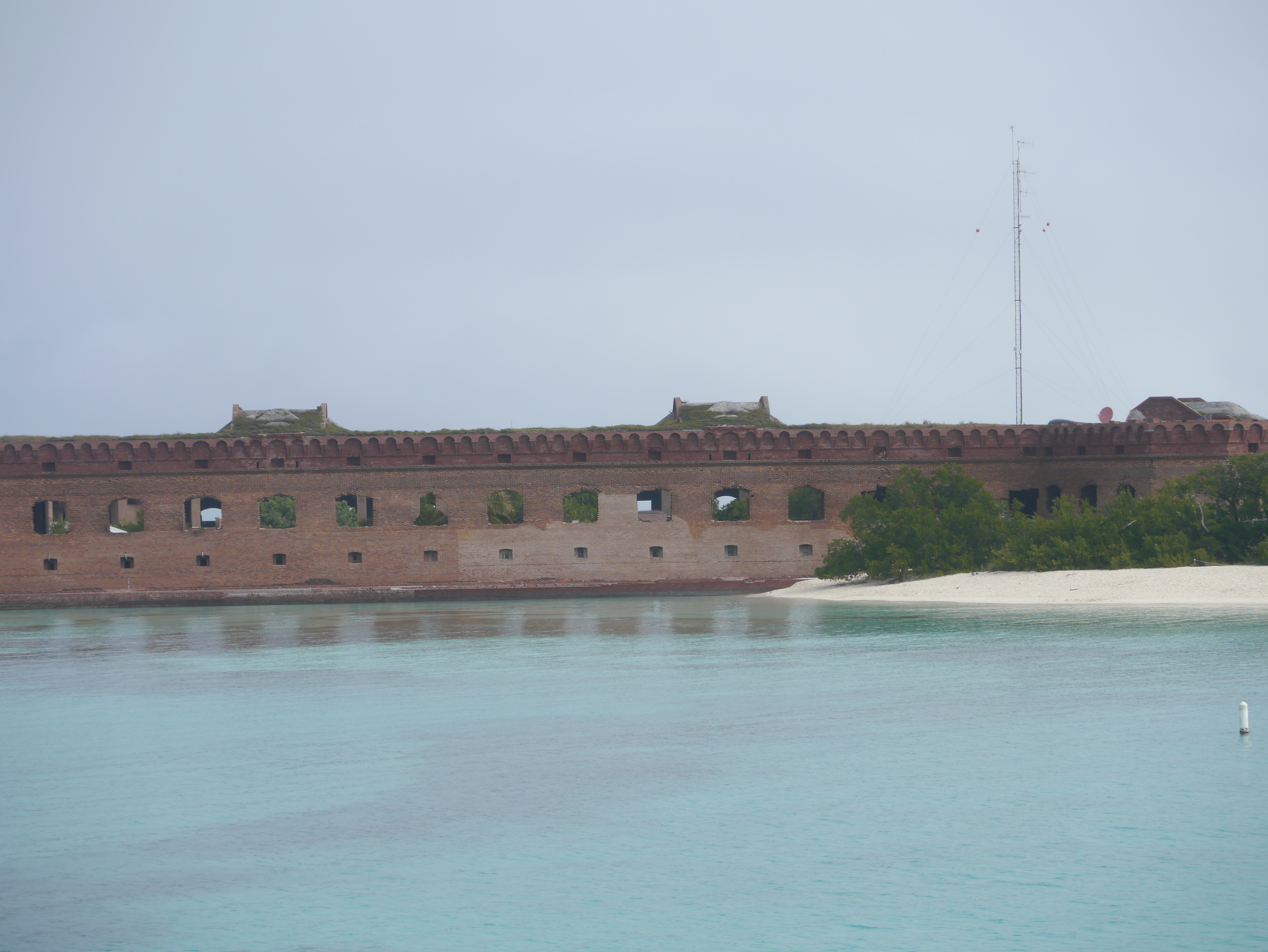 The Yankee Freedom II set off from Key West at 6am for the 70 mile trip across the Gulf of Mexico to the Dry Tortugas. Named Las Tortugas (turtles) by Ponce de Leon who landed here from Europe in 1513 and found the seas brimming with hawksbill, leatherback and loggerhead turtles. Nautical charts warned that the 7 mile long archipelago of 7 low lying islands were “dry” because of the lack of fresh water. An issue for the residents of Fort Jefferson that was built here to protect the Gulf of Mexico’s shipping routes. A very impressive 45’ high 3 level hexagonal building with 2000 archways which run ½ mile round the outside. But most impressive of all is that it was built with 16 million bricks!!!