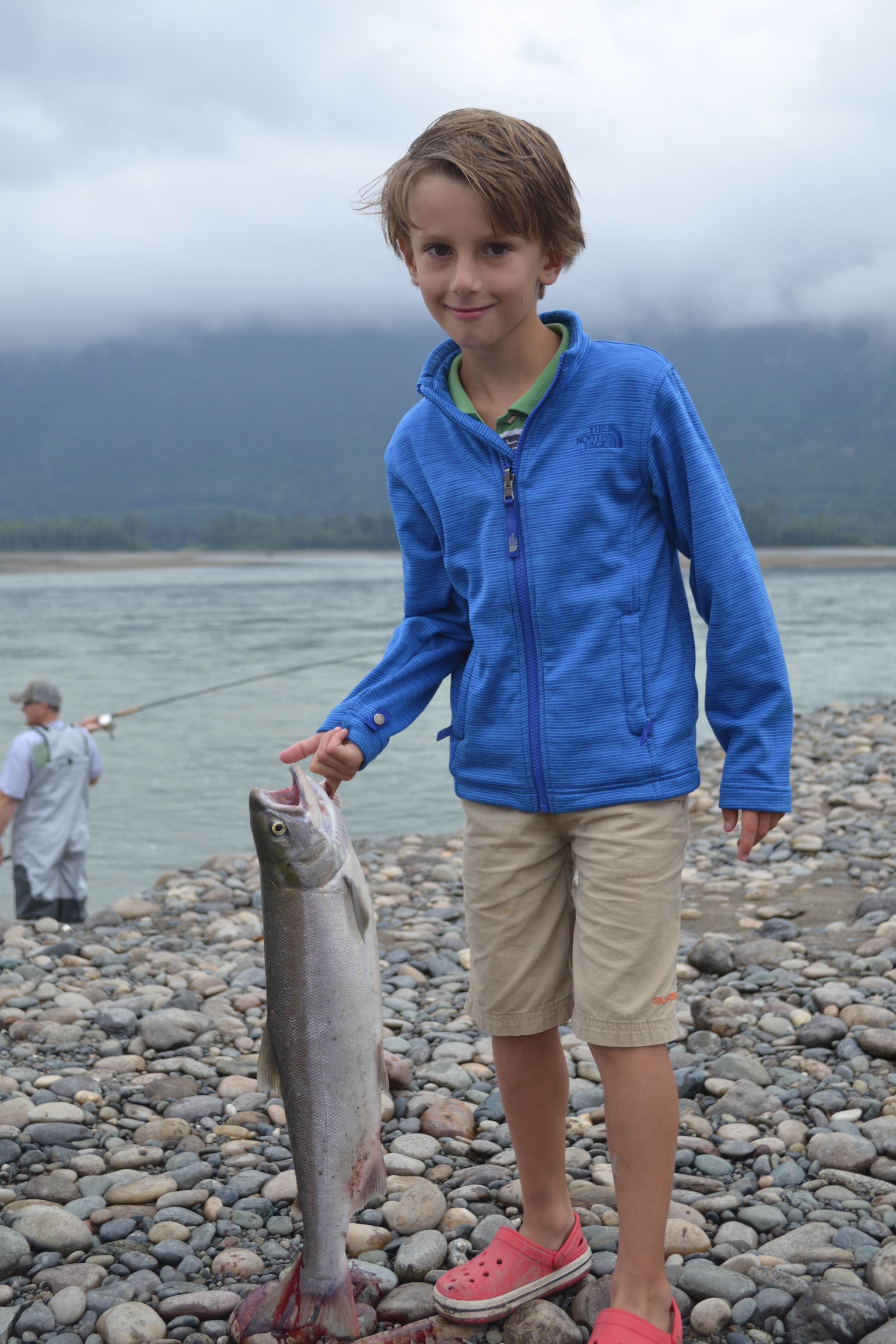 Another location we have fished is in rivers. Such as Panther River where we caught trout and a lot snags (spent a lot of money on some new tackle after that!) however this isn’t the only place we have been catching river fish. When we got to Vancouver we went salmon fishing in the Fraser River. This was a big step forward in our fishing. Before this Charlie would never even have considered ripping the gills out of a salmon, ready for it to be eaten – let alone using the guts as bait to catch some chubbs too. I think one day of salmon fishing changed his mind. Between us we caught 6 or 8 huge and delicious salmon. Before we left we filled our freezer with the “fresh catch” as well as well as the sweet corn Barb and Norb had generously given us.
