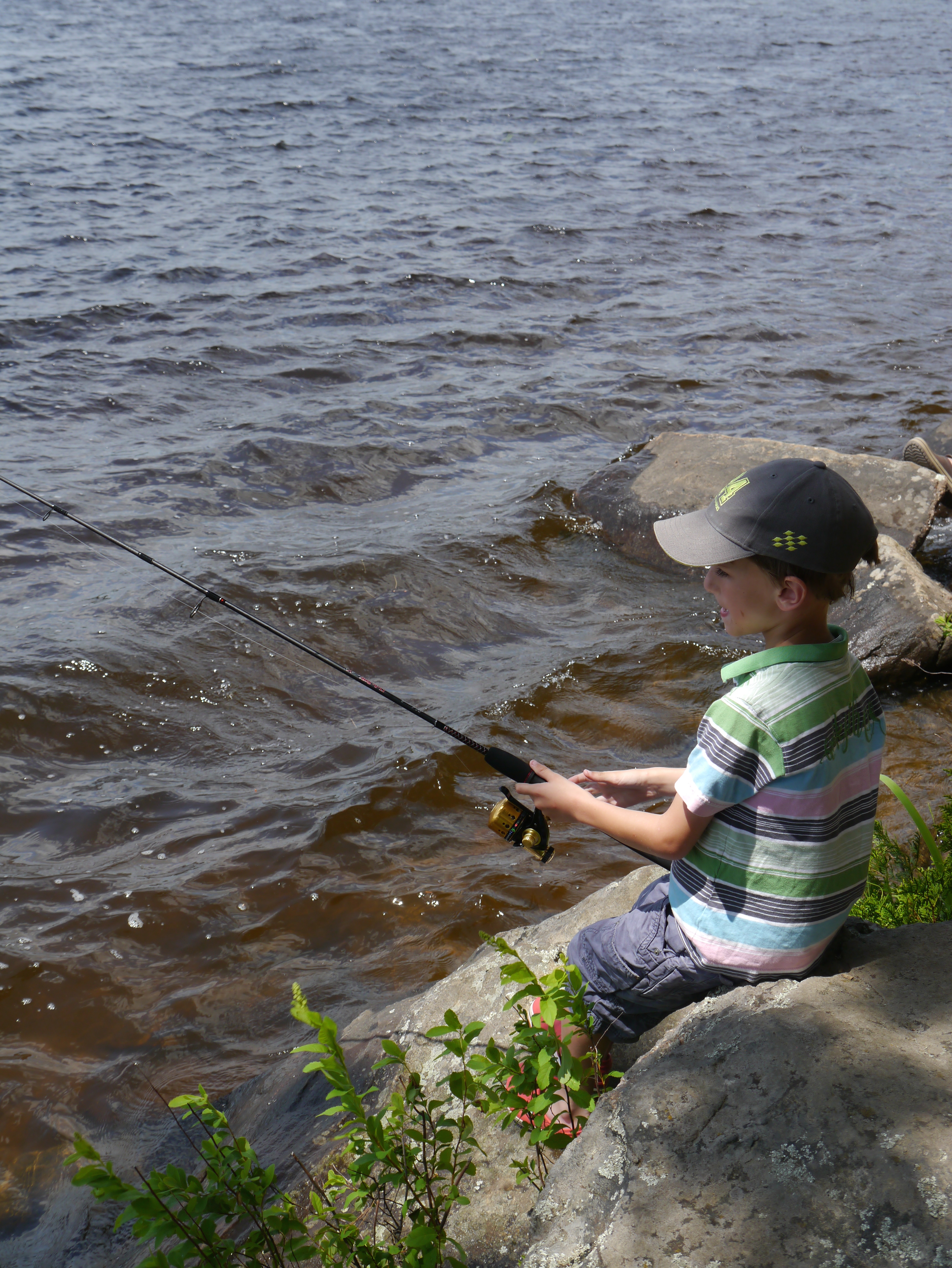 Our first location we went fishing was in Arrowhead Provincial Park in Ontario, we caught nothing. However our next campsite was in Algonquin Provincial Park. The park had organized a fishing day for kids and a local man took us out on his boat. Mum and I caught some perch and when we got back they fileted our catch and we cooked them that night. A really great way to start our fishing experience. In addition to that Charlie won a free tackle box in their competition. So thanks to Charlie we now had two tackle boxes.