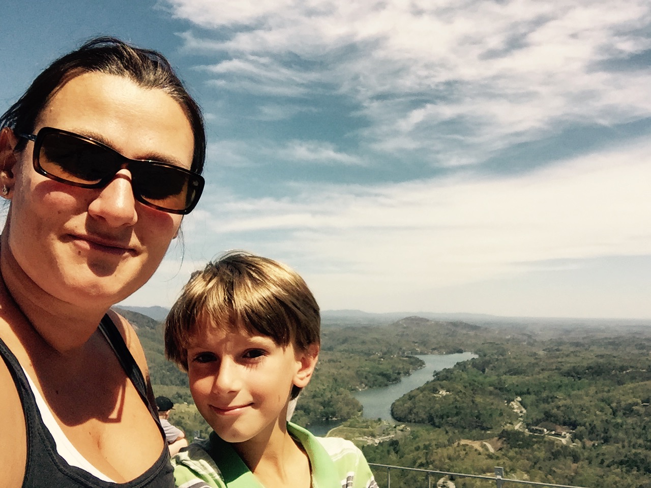 We hiked uphill to the Hickory Nut Falls through forests that felt like they were in another season compared with our cold hike from yesterday. The falls were used in the filming of Last of the Mohicans, which they are delighted to tell you at any opportunity. The blossom was out the birds were singing like Spring had sprung. Then did the 660 steps up to Chimney Rock itself – we rejected the elevator and counted our way up then down again! Stood on top of the 315’ granite monolith we got to see the stunning views including over to Lake Lure where they filmed Dirty Dancing – pretty exciting stuff eh?