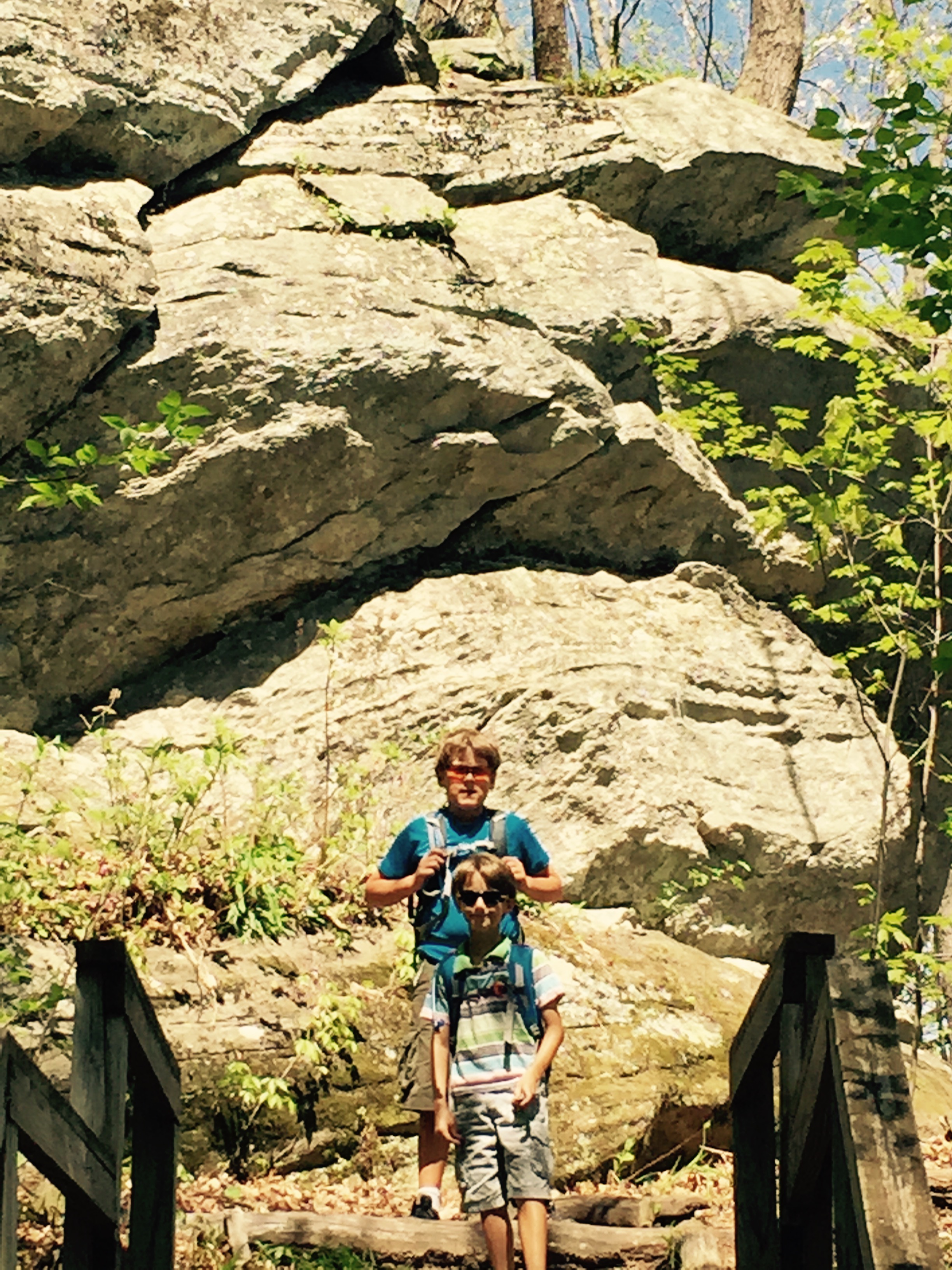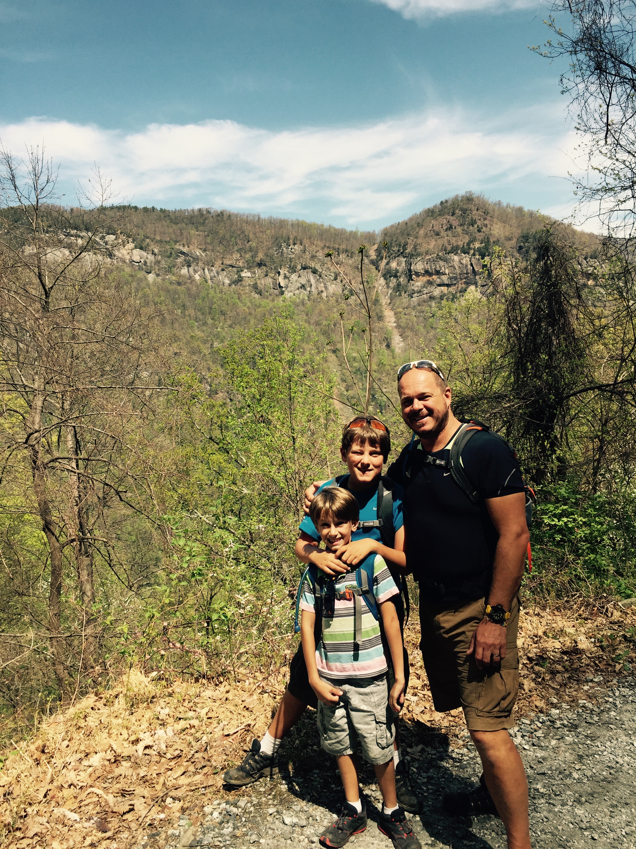 We’d hoped to visit Grandfather Mountain where you make your way over a creaky old suspension bridge 228’ long to take in some stunning scenery. But for the one of the first times on this trip we were told we just couldn’t access it in our ‘large vehicle’. So we settled instead at a completely empty campground at Linville Falls. They’d only just opened for the season and so we enjoyed having the whole place to ourselves. We hiked up and over the river to where it crashes 2000’ down through the gorge. Pretty impressive – but not enough to stop William nagging us to hurry back to the campsite so he could go fishing!!