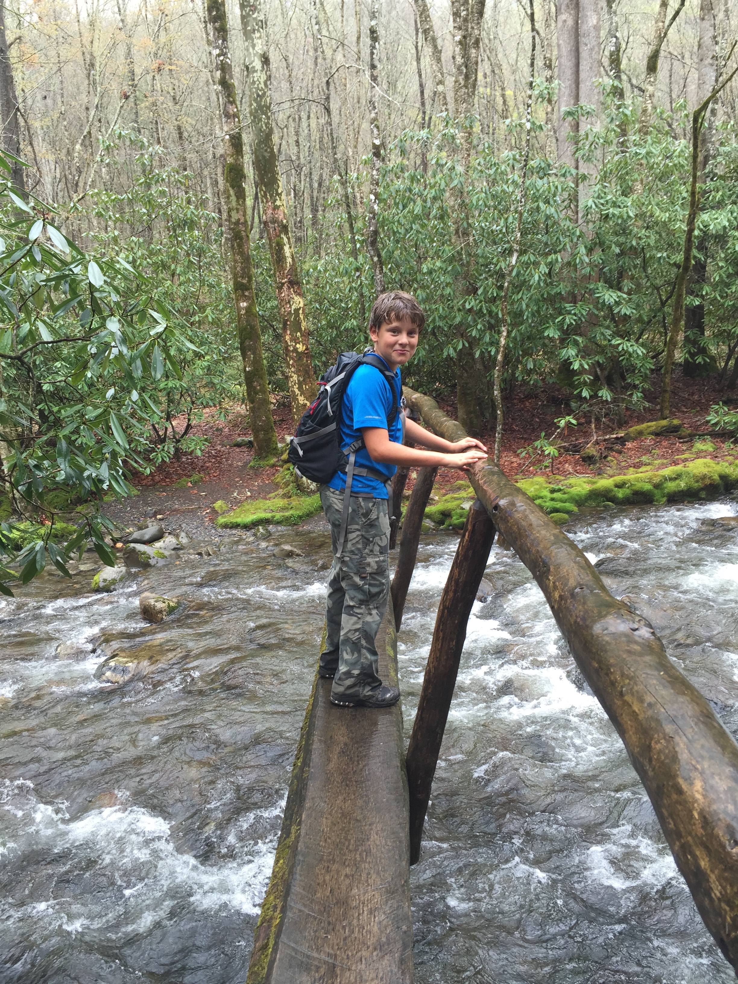 The first campsite we stayed at in the park was Smokemont, which was once a logging camp. Situated on the river we took one of only 3 sites that were occupied only. Despite it being a horrible grey rainy day it didn’t put Will off fishing. Charlie and John settled down for a snooze and I sat on the riverbank with Will. When he got his line trapped on a tree for the third time I waded out up to my thighs to retrieve it. He was doubled over laughing and I was in agony in the freezing water. It took hours before I could feel my toes again.