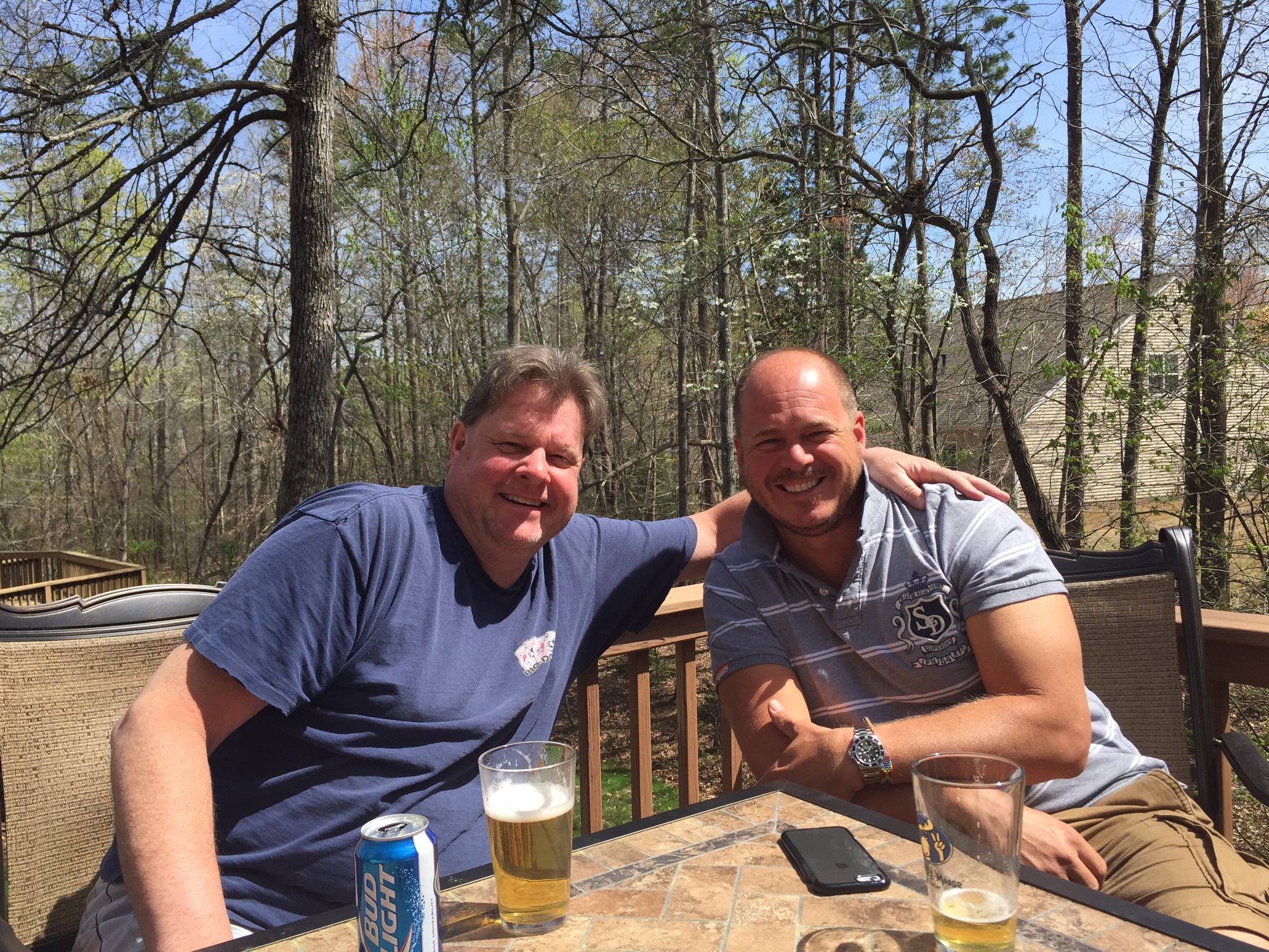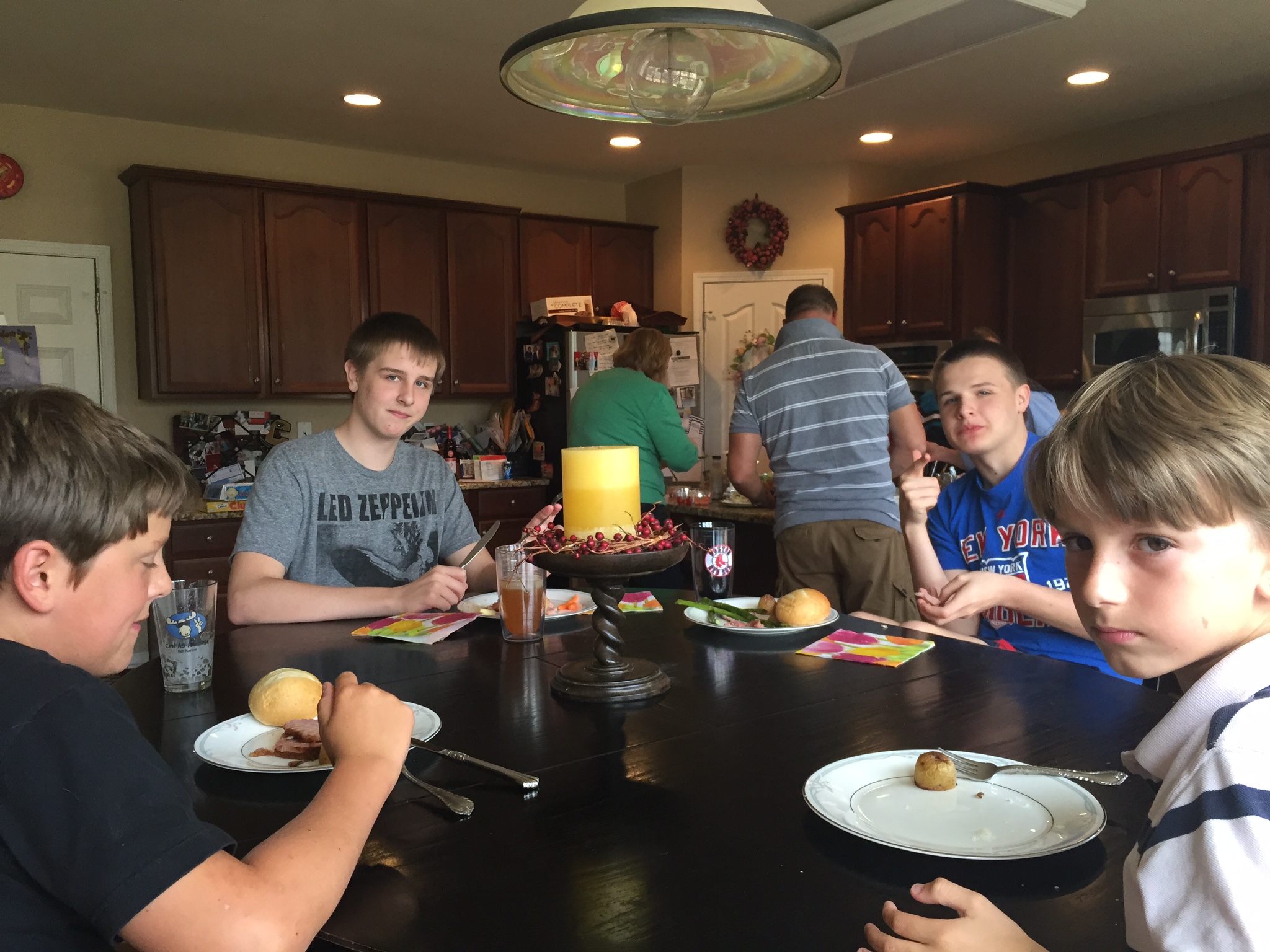 On Saturday we drove to the town of Waxhaw, where Lisa and Chuck live. It’s a really lovely old town just south of Charlotte (named for the Native American tribe that once lived here). The kids hit the skate park while I slept in the van – that jet lag is a killer.We arrived at Chuck and Lisa’s house early evening. Their twin sons Patrick and Connor are now 17 – last time we saw them they were 7! We drove into their road hoping their house would be one of the ones on the left with the flat driveways and not on the right with the steeply sloping driveways. Guess where it was? So we had to take the trailer off and Patrick and Connor pushed it up the driveway, having first moved the basketball hoop. Then John inched Frankie up onto the driveway. All this maneuvering obviously drew much attention from the neighbours, who had kindly agreed to overlook the Association Rules that says that no RV’s can be parked on the cul-de-sac!