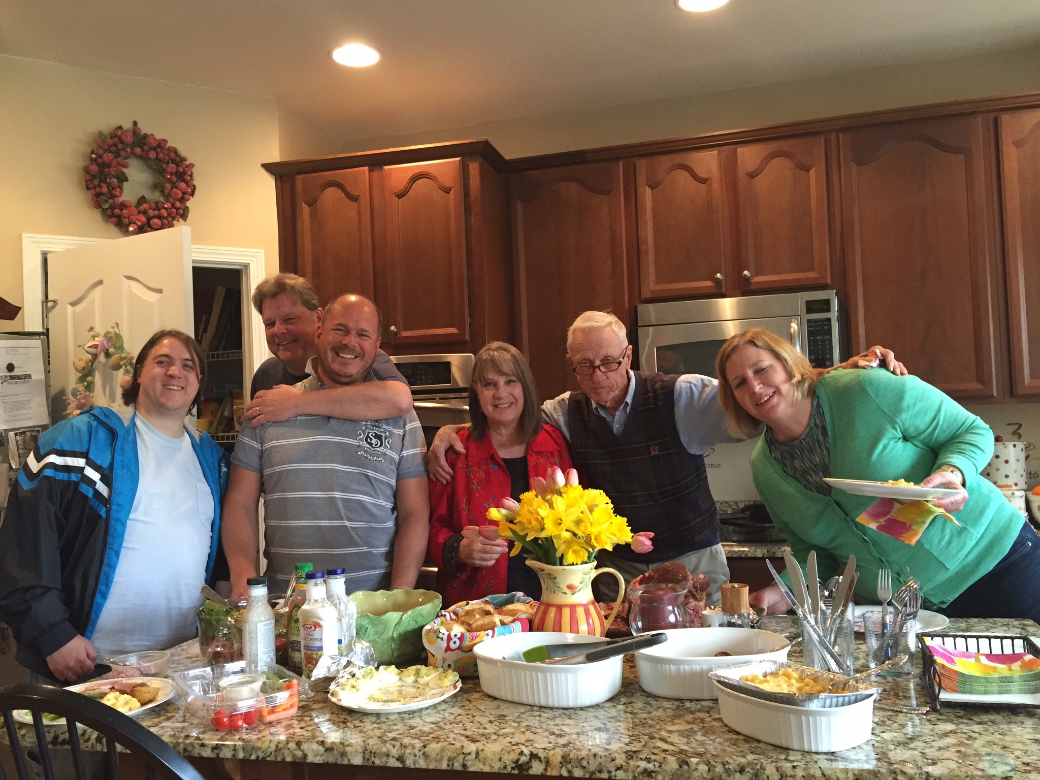 The Easter bunny had been so the boys fought between themselves and Duke their gorgeous great doggy on an Easter Egg hunt. Carol’s other sister Bryn and her son Eric and husband Paul, who live nearby, joined us for a really lovely family Easter lunch. I think the last time we met was Dad and Carol’s wedding party over 15 years ago!! It was just sad Dad and Carol weren’t there with us too…