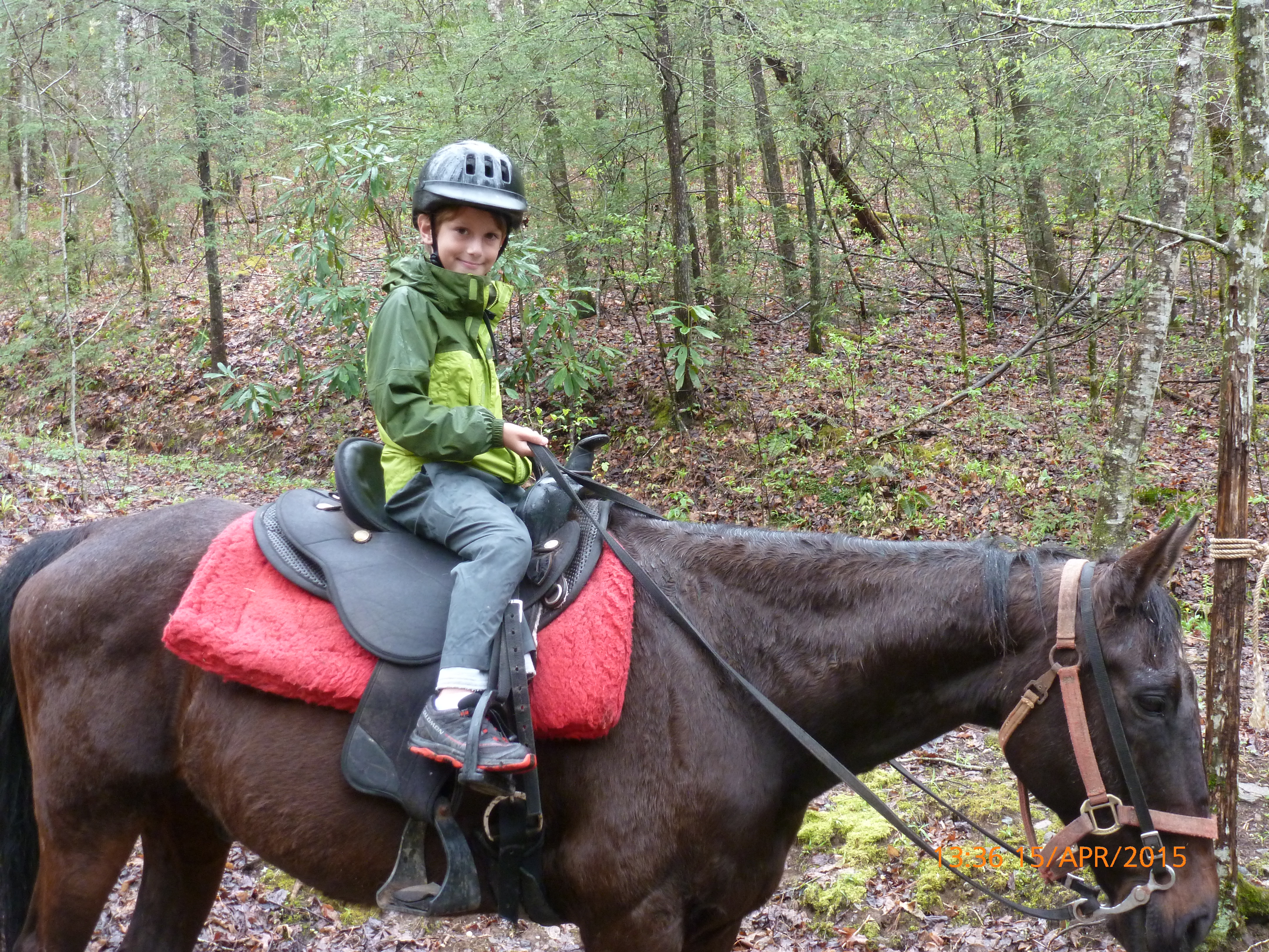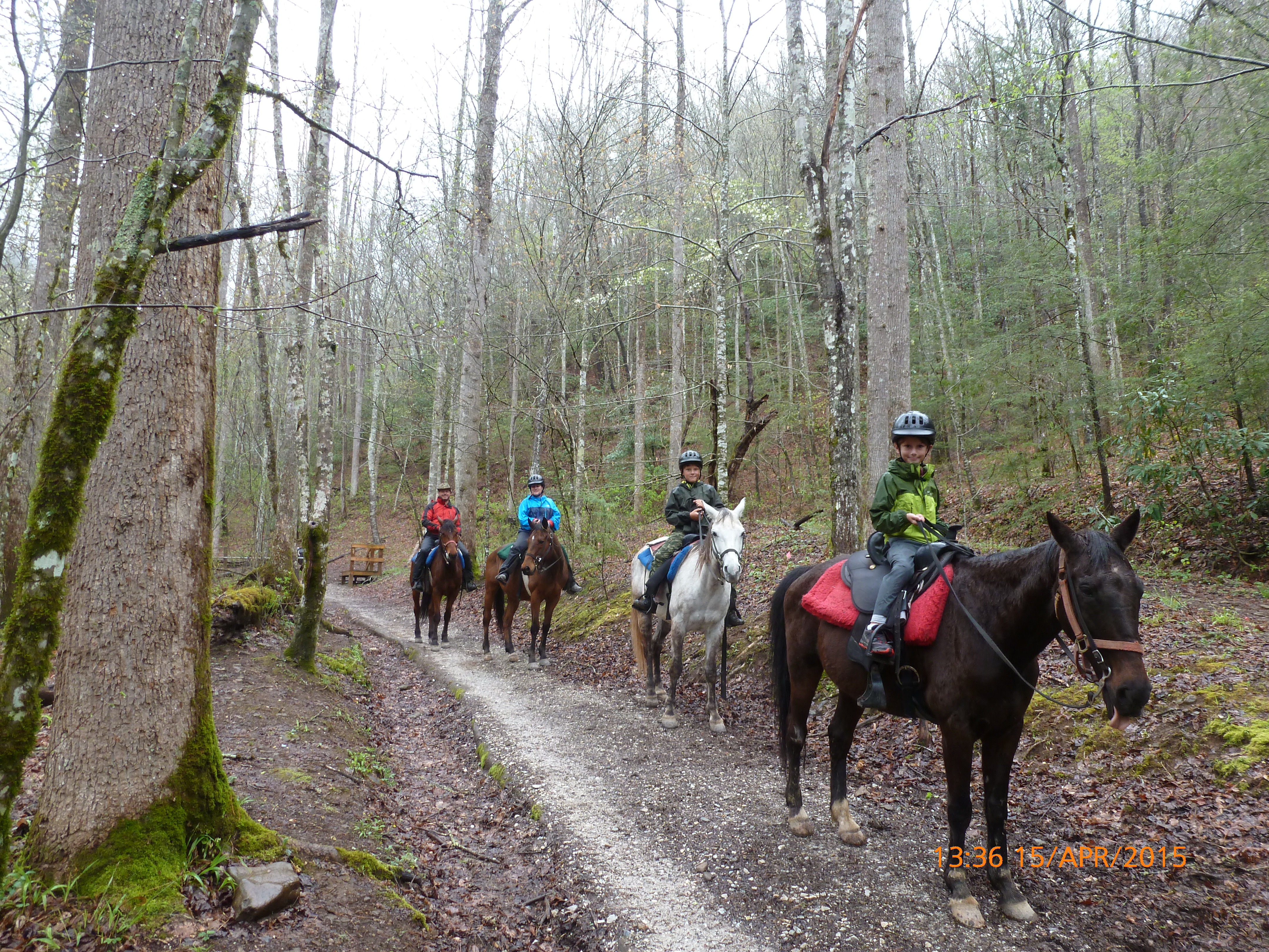 It had been raining all night and the noise on the roof of the van kept us all awake half the night. When we woke up it was still raining so we delayed going out for as long as possible by doing maths – desperate times!! We walked off to the stables run by NPS to ask about riding and at only $30 per hour it seemed rude not to. We then walked back to the campsite and walked the full length of it to find the start of the trail. We hadn’t realised quite how enormous the campsite was. We discovered that we were in 1 of 5 bays currently open. The Great Smoky Mountains is the most visited of all the National Parks – it gets 9 million visitors a year!!