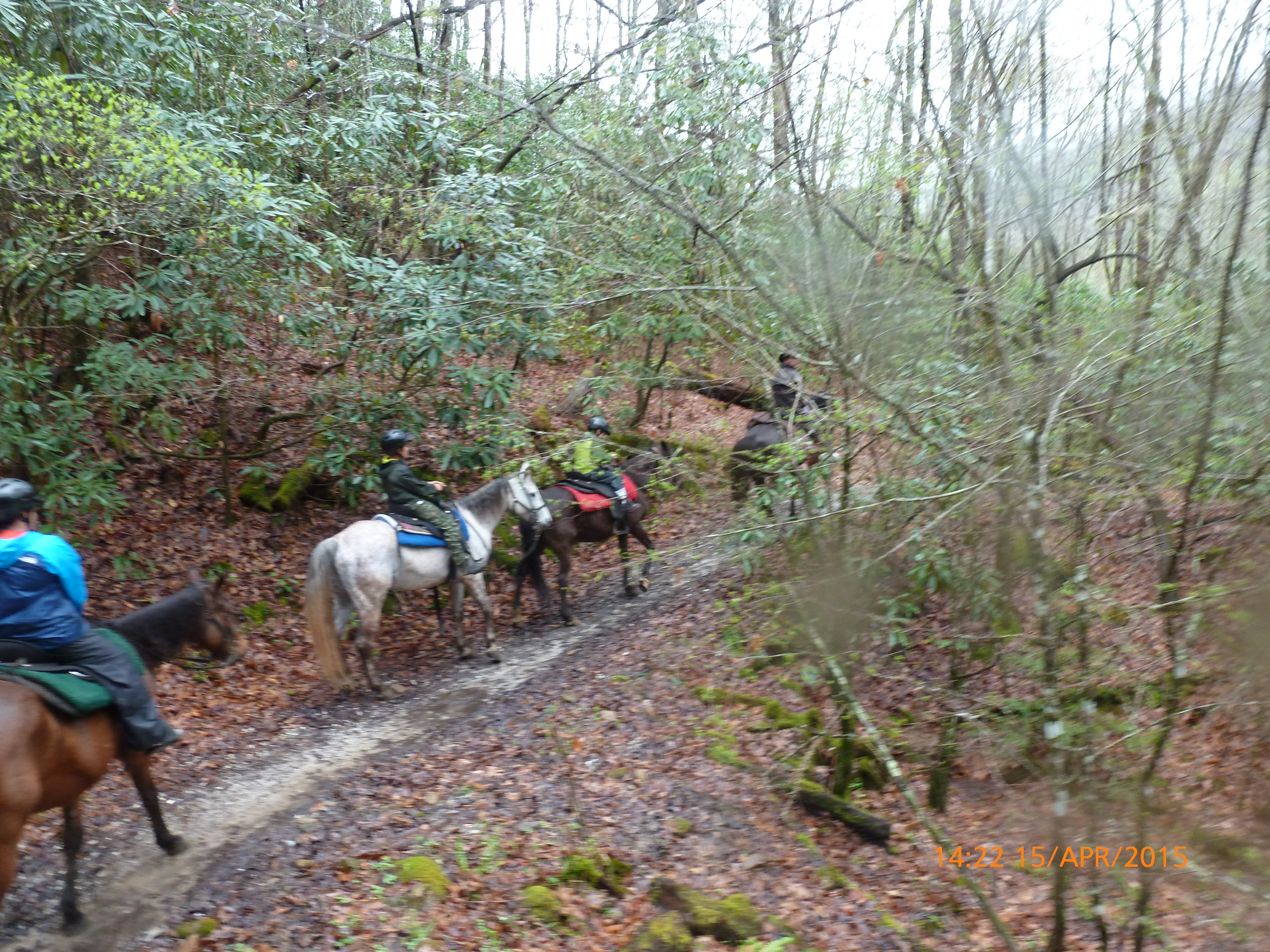 The ride was fabulous. Up and over the top of the campsite we’d been in and alongside a lot of the beginning part of our hike yesterday. We went up and over rocky paths, over and along streams and springs. Truly lovely. The kids are such complete naturals, curse them! I just let Ruger lead the way. We stopped half way at a waterfall, which was lovely even in the rain. It really was a lovely experience and Jason was right – it did give you a new perspective on the forest!!