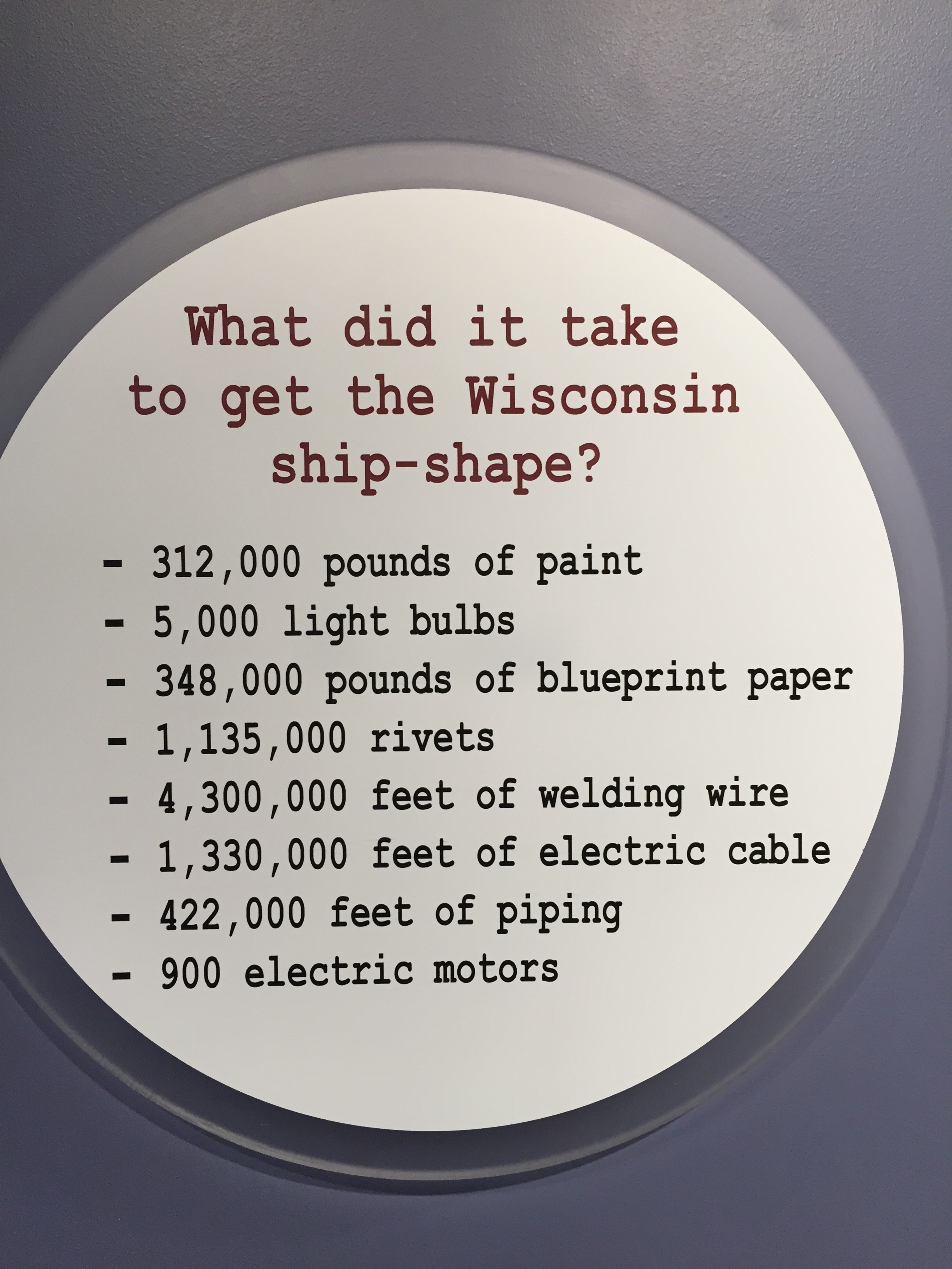 Excitement over we headed to the Nauticus museum, which is where USS Wisconsin is housed. It is as big as a 17 storey building, with a crew in it’s time of over 2000. It had 9 x 16-inch guns, which each fired a shell the same weight as a VW beetle. Each of the 3 turrets weighed 2500 tones! Despite all of this extra weight it was able to move at 38mph which was pretty impressive for something so very huge!! It was launched on 7th December 1943, 2 years to the day after the attack on Pearl Harbour. They built it in 39 months and it cost $100 million to build. It served in WWII, the Korean War and then in Kuwait. 57 years after it was built it arrived here in Norfolk.