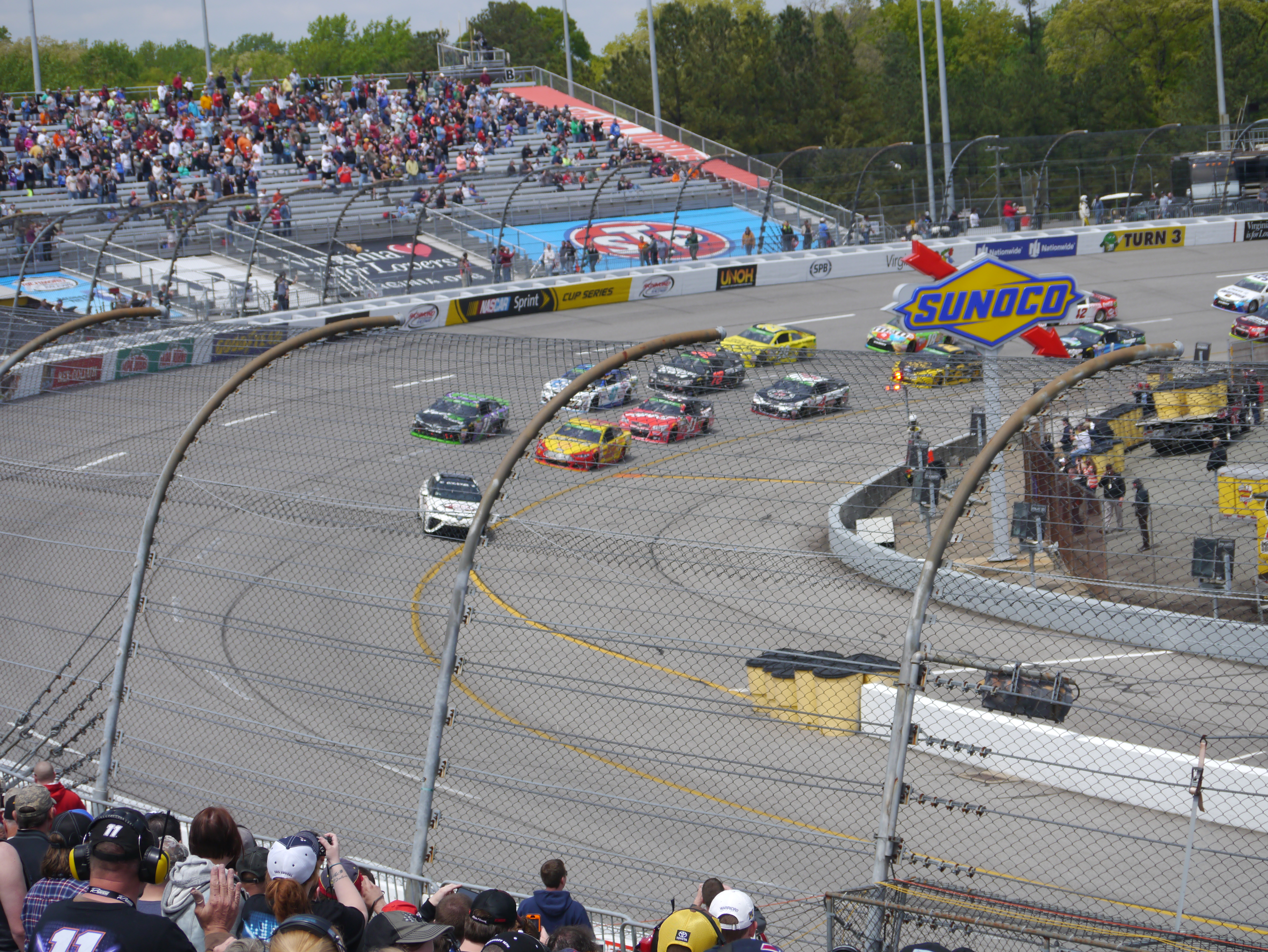 We drove on to the campsite John had booked in Appomattox; another State Park called Holliday Lake, which we arrived to just as it was getting dark. So did little more than have a campfire and BBQ and sleep. On Friday 24th we woke in what was a lovely campsite. Blossom on the trees, birds singing, all around a very pretty lake. We would dearly love to have stayed for the weekend. But we had tickets for Nascar for Saturday in Richmond, Virginia so we had to leave. (Little did we realise how great a contrast it would be between where we woke up and where we went to sleep that day).