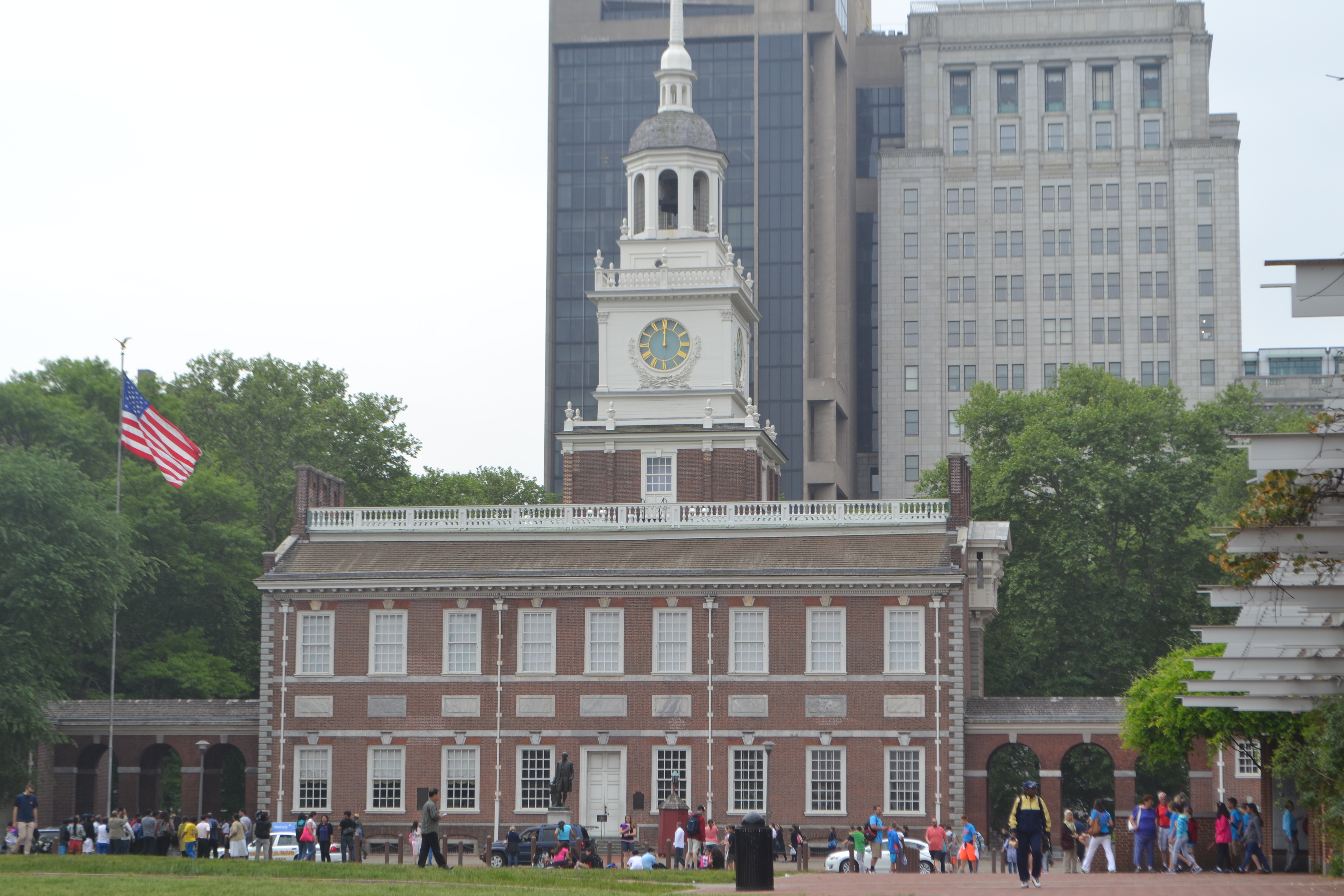 Here in Independence Hall they prepared and signed the Declaration of Independence. The 20 min Declaration of Independence speech was read out in the first week of July 1776 at the end of which they rang the Liberty Bell (which was housed here before being moved to it’s new location in the Liberty Bell Centre). At the time there were 13 colonies. So the number 13 is everywhere not least of all in the rising sun with 13 rays on the roof that showed the idea of 13 ‘united’ states. It was while Franklin was in Paris asking for money and arms for the newly ‘United States’ that the name was first used and it stuck.