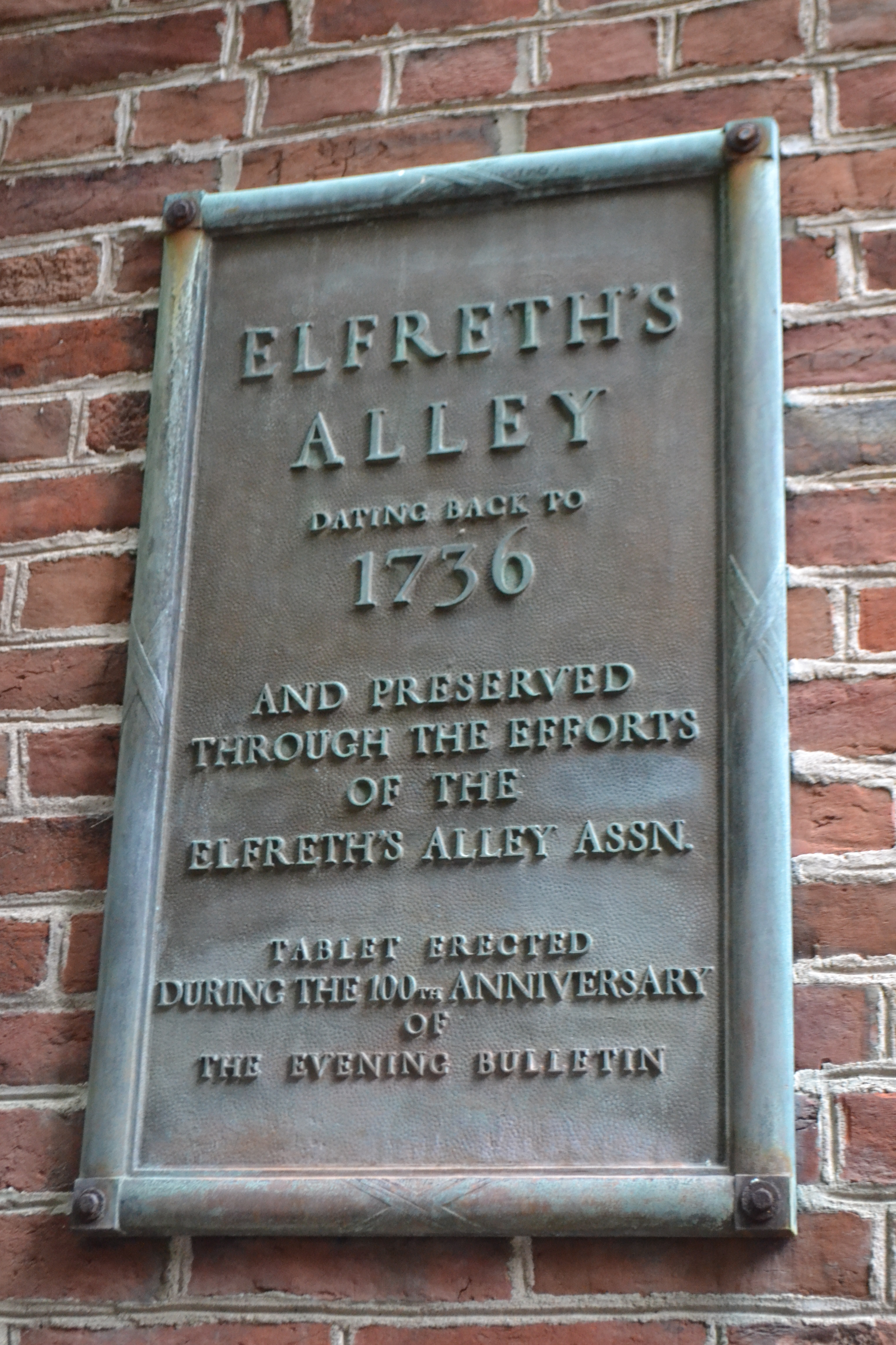 We took a wander down Elfreth’s Alley, the oldest residential street in the USA. Past the Betty Ross NP Centre. This is the lady who made the first stars and stripes flag – so they have made her house into a memorial! There are memorials for absolutely everything in this town – plaques everywhere you look. Especially liked this one!!